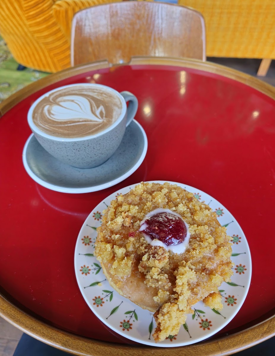 This is the second Round I've been to – and the superior one so far! Compared to Steissi, this café is cozier and more atmospheric. It also has more space to sit and relax. The location of this café is great as well. I had the feta bagel and a hot beverage. My friend and I also shared two doughnuts (seen in the picture). Everything was great, could not find anything to improve. :-) The staff was kind and helpful.
